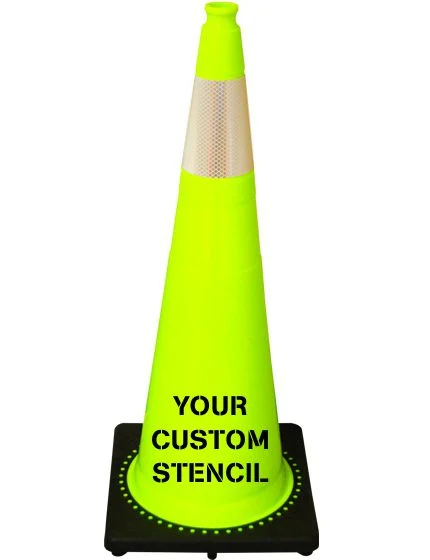 Lime, Black Base, 36" Cone with Single 6" Reflective Collar & Double Sided (2X) Custom Stencil