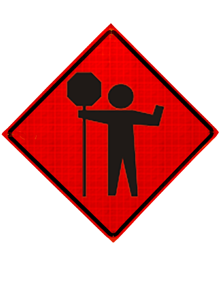 Flagger with Paddle Symbol - 36" x 36" ORALITE® Marathon Roll Up Construction Signs