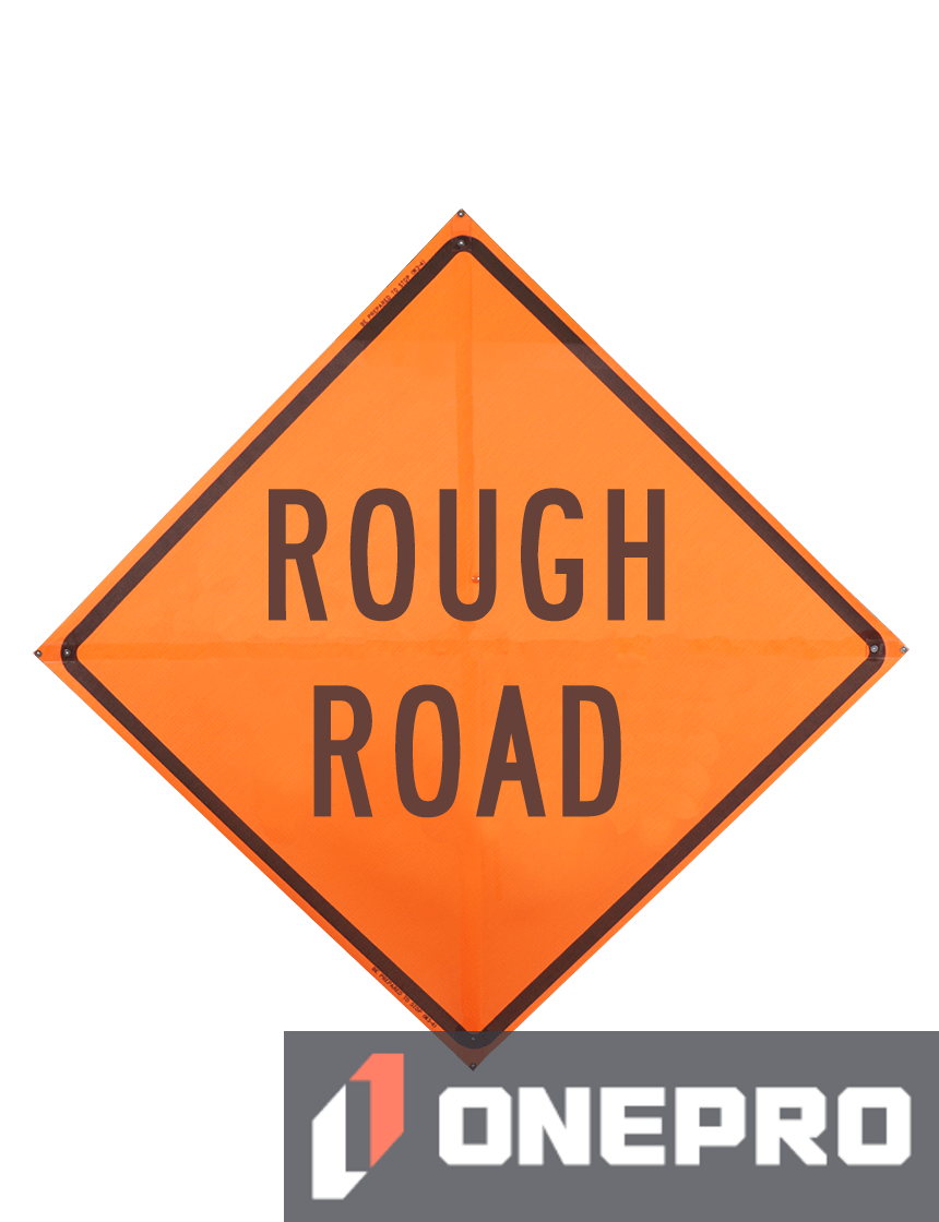 Rough Road - 36" x 36" Mesh Roll Up Construction Signs - W8-8