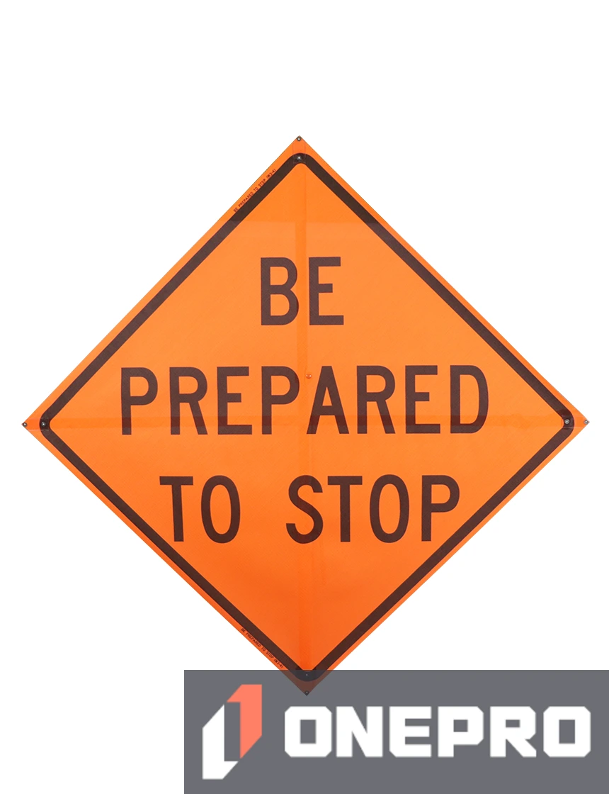 Be Prepared To Stop - 48" x 48" Mesh Roll Up Construction Signs - W3-4