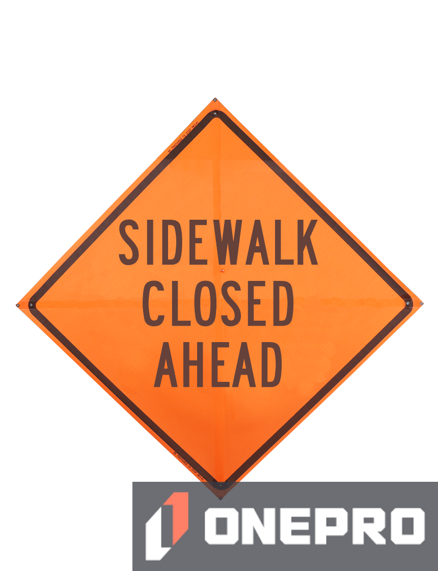 Sidewalk Closed Ahead - 48" x 48" Mesh Roll Up Construction Signs